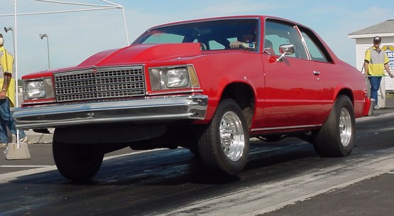 This is my 1979 Malibu 3600 pound street car. I was at your track(Cape Breton Dragway) this summer and had a ball. The Malibu has a 496 cube BBC with steel GM heads, Lunati roller cam, Edelbrock Super Victor intake with a 1050 Dominator. I went to Super Chevy in Epping N.H. and went to the third round. Raced at Mirmichi 3 times and at Raceway Park PEI all summer. Over the winter I'm planning on lightening up the car a little for next year and updating the brakes.