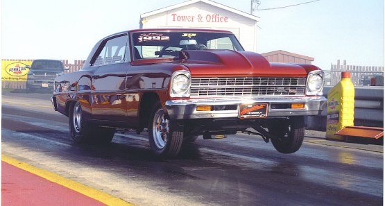 runs on high test gas. Chassis Specifications: Stock Suspention front and rear with drag shocks and coil springs up front.