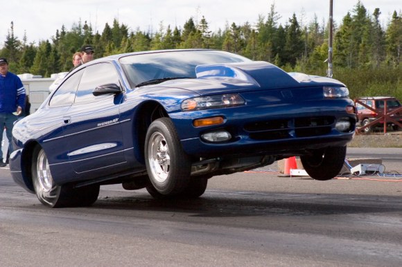 95 ProStreet Dodge Avenger , 598 mopar engine 12.3 to 1 compression scat billit crank7.100 eagle rods and ross pistons 440-1 indy cylinder heads stage two porting by muscle motors, ultradyne 640 lift flat tappet cam,990cfm carb shop carb. It runs a 727 mopar trans and 5000 stall ati ATI converter , dana 60 with 4.10 gears car weights 3445 lbs and best run on the motor 9.67 @142.39 and 1.36 60 ft.( P.S. Us newf's had a ball this past summer at Cape Breton and PEI tracks, and look forward on revisiting you guys sometime in the future. )